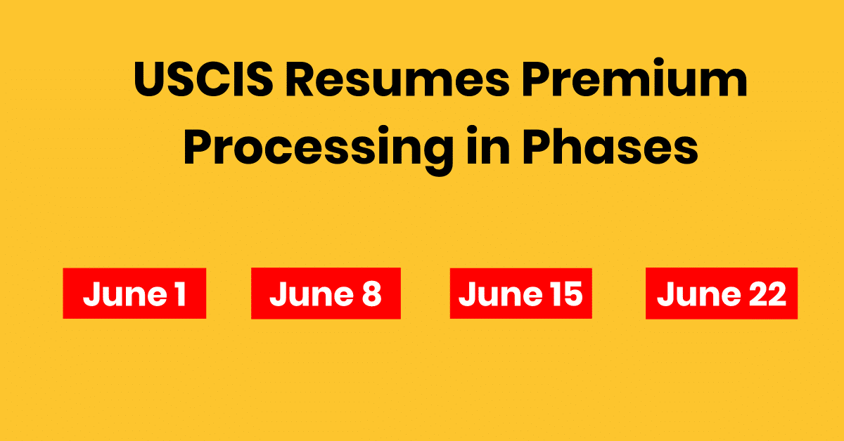 USCIS announced today that it will resume Premium Processing in three phases starting June 8, 2020.